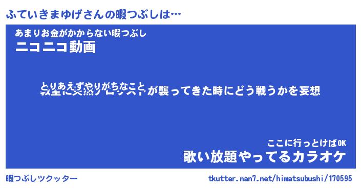 | 男性向けラノベタイトル風あだ名 | 『フテイキマユゲアートオンライン』 |
