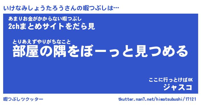 | 男性向けラノベタイトル風あだ名 | 『いけなみしょうたろうの憂鬱』 |
