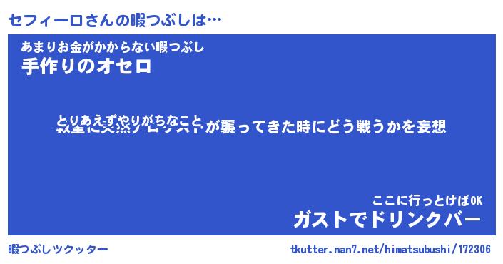 | 伝説のあだ名 | 『封印されしスナイパーセフィーロ』 |