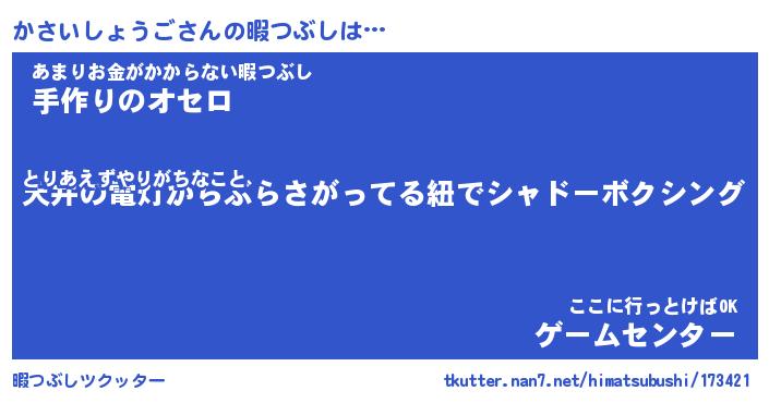 | 2回繰り返すあだ名 | 『かさかさ』『かかささ』『おたおた』 |
