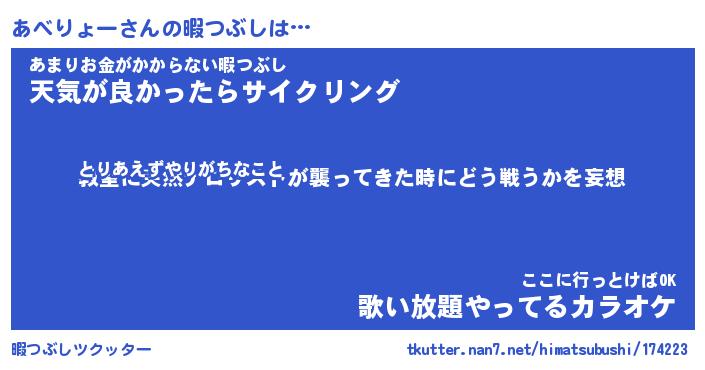 | ヒーロー風カッコイイあだ名 | 『スーパーアベリョー』『銀牙騎士アベ』 |