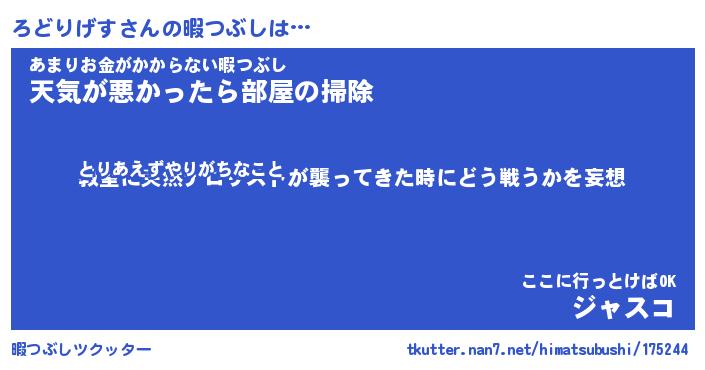 | 2回繰り返すあだ名 | 『ろどろど』『ろろどど』『いらいら』 |