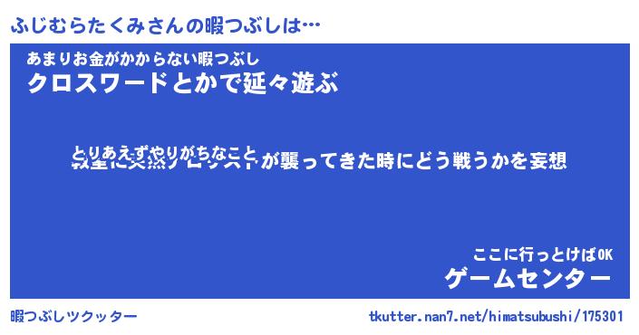 | 胡散臭い通販商品みたいなあだ名 | 『億万長者になれる水晶球…その名も「ふじむらたくみ」』 |
