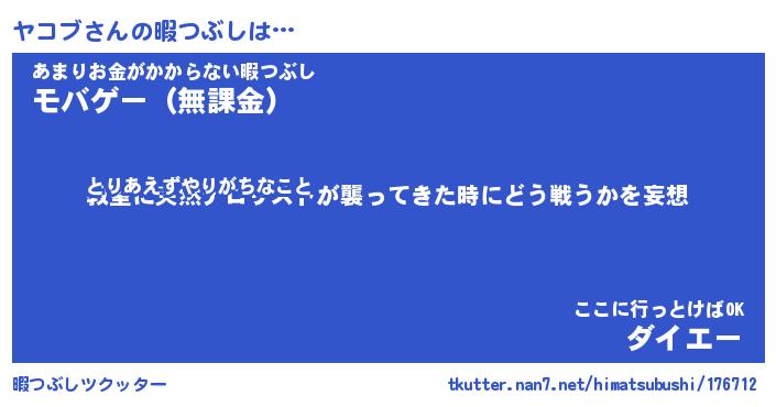 | 男性向けラノベタイトル風あだ名 | 『ヤコブアートオンライン』 |