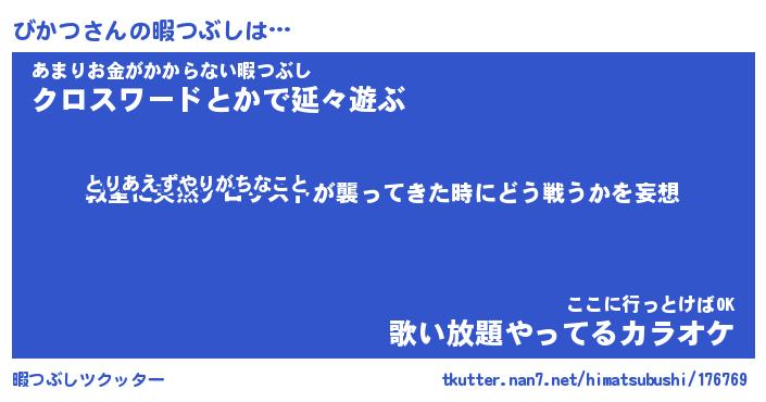 | 伝説のあだ名 | 『封印されしスナイパーびかつ』 |