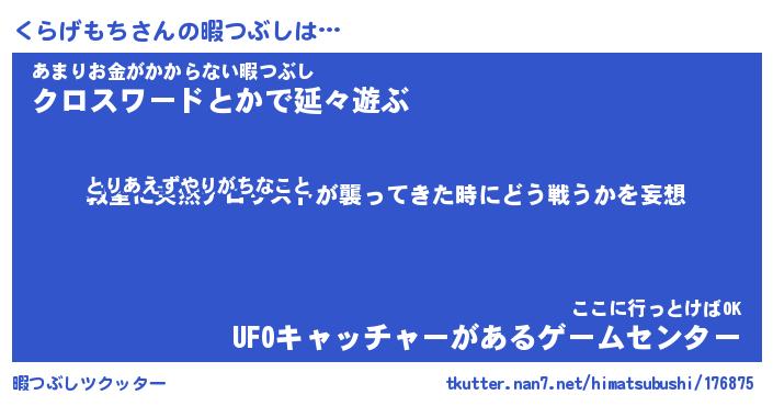 | ヒーロー風カッコイイあだ名 | 『スーパークラゲモチ』『魔戒騎士クラ』 |