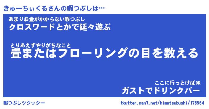 | ヘコむあだ名 | 『きゅっふぃ~』『つくし』『きゅを』 |
