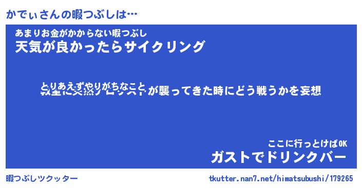 | 伝説のあだ名 | 『封印されしスナイパーかでぃ』 |