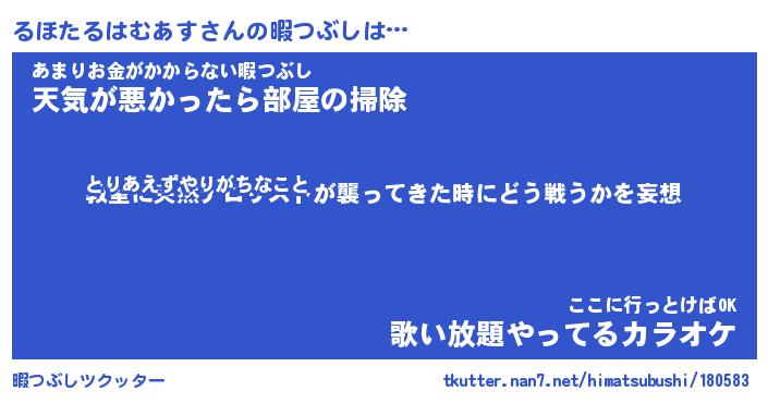 | 伝説のあだ名 | 『封印されしスナイパーるほたるはむあす』 |