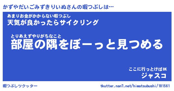 | 男性向けラノベタイトル風あだ名 | 『かずやだいごみずきりいぬの憂鬱』 |
