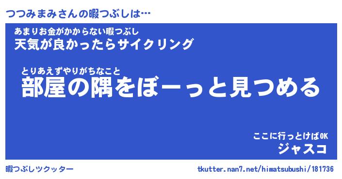| 男性向けラノベタイトル風あだ名 | 『つつみまみの憂鬱』 |
