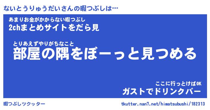 | 男性向けラノベタイトル風あだ名 | 『ないとうりゅうだいの憂鬱』 |