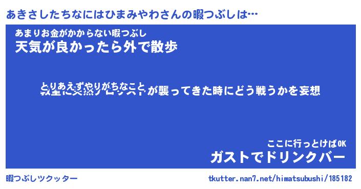 | ツイッター | あきさしたちなにはひまみやわさんのツイッターID『fukuyoka_man』 |