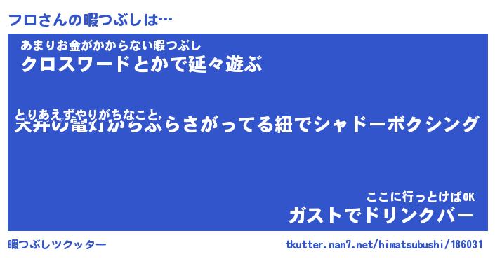 | ヒーロー風カッコイイあだ名 | 『スーパーフロ』『ウルトラフロマン』 |