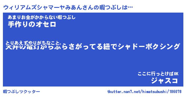 | 胡散臭い通販商品みたいなあだ名 | 『モテモテ間違いなし霊験あらたかなお札…その名も「ウィリアムズシャマーヤみあん」』 |