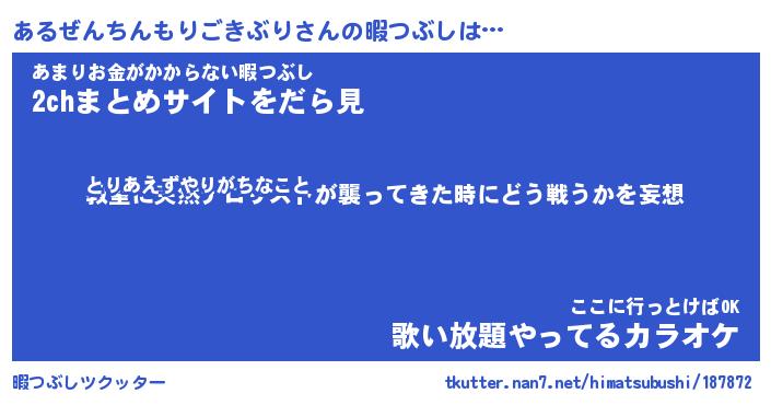 | 料理風あだ名 | 『ネギたっぷりあるぜんちんもりごきぶりの南蛮漬け』 |