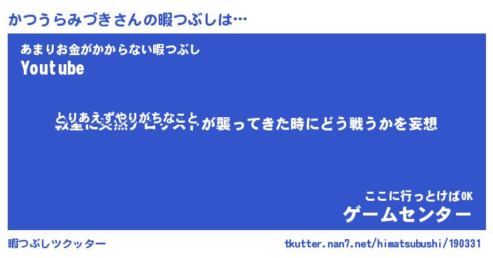 | 胡散臭い通販商品みたいなあだ名 | 『億万長者になれるブレスレット…その名も「かつうらみづき」』 |
