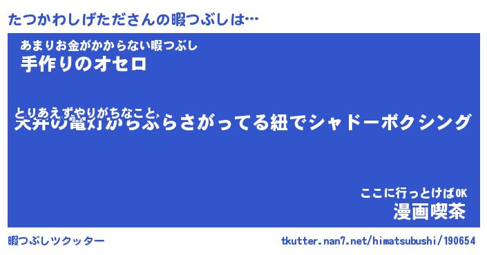 | 胡散臭い通販商品みたいなあだ名 | 『モテモテ間違いなし水晶球…その名も「たつかわしげただ」』 |