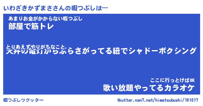 | 肩書あだ名 | 『いわざきかずまさ御曹司』 |