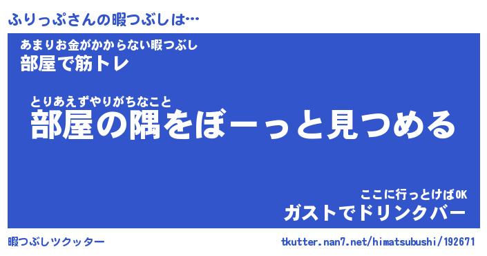 | 男性向けラノベタイトル風あだ名 | 『ふりっぷの憂鬱』 |