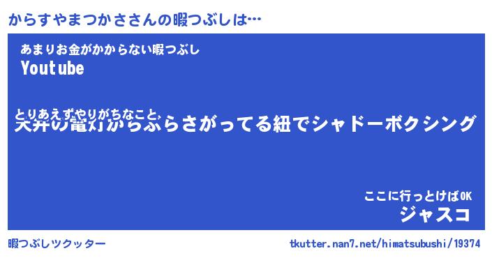 | 肩書あだ名 | 『からすやまつかさ店長』 |