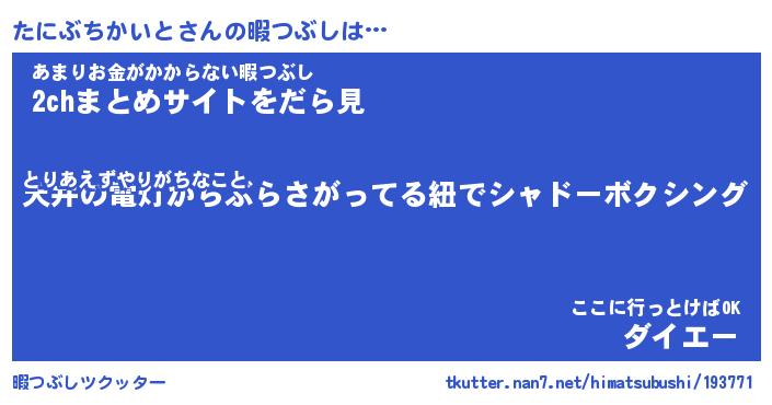 | ヒーロー風カッコイイあだ名 | 『スーパータニブチカイト』 |