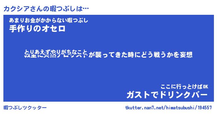 | 伝説のあだ名 | 『封印されしスナイパーカクシア』 |