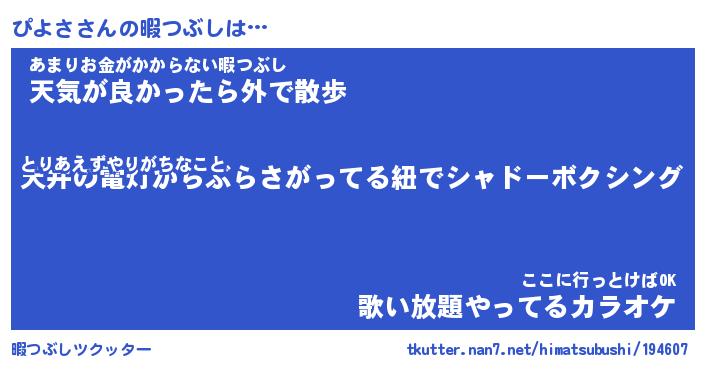 | ヘコむあだ名 | 『ぴよにゅー』『なまこ酢』『ぴよお』 |