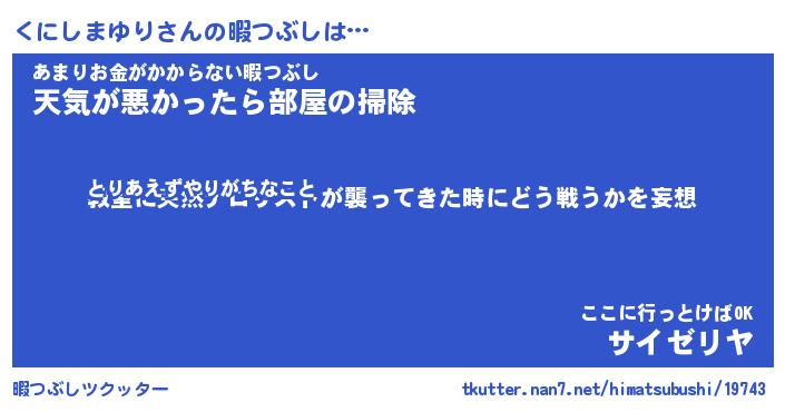 | ヒーロー風カッコイイあだ名 | 『スーパークニシマユリ』『幻影騎士クニ』 |