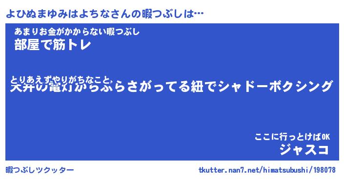 | 料理風あだ名 | 『節約★よひぬまゆみはよちなと油揚げの玉子丼』 |