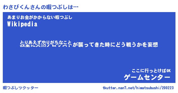 | 伝説のあだ名 | 『封印されしスナイパーわさびくん』 |