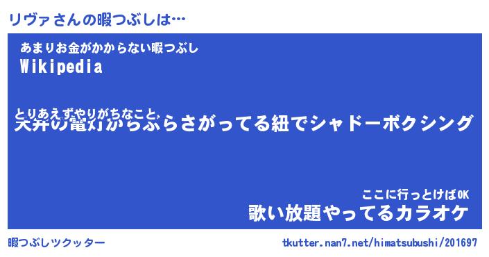 | ヘコむあだ名 | 『リヴにー』『なまこ酢』『リヴを』 |