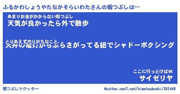 | 肩書あだ名 | 『ふるかわしょうやたなかそらいわたCEO』 |