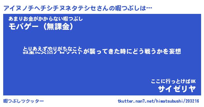 | ヒーロー風カッコイイあだ名 | 『スーパーアイヌノチヘチシチヌネタテシセ』 |