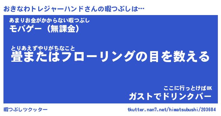 | 男性向けラノベタイトル風あだ名 | 『おきなわトレジャーハンドの憂鬱』 |