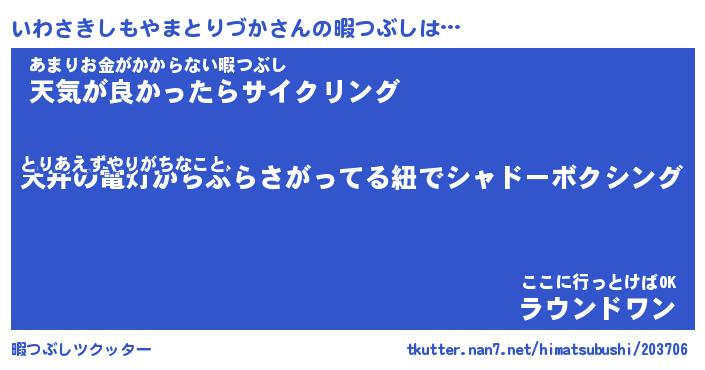 | ツイッター | いわさきしもやまとりづかさんのツイッターID『katatsumuri_nyan』 |