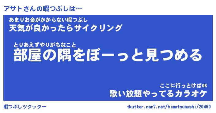| 男性向けラノベタイトル風あだ名 | 『アサトの憂鬱』 |