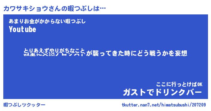 | 伝説のあだ名 | 『封印されしスナイパーカワサキショウ』 |