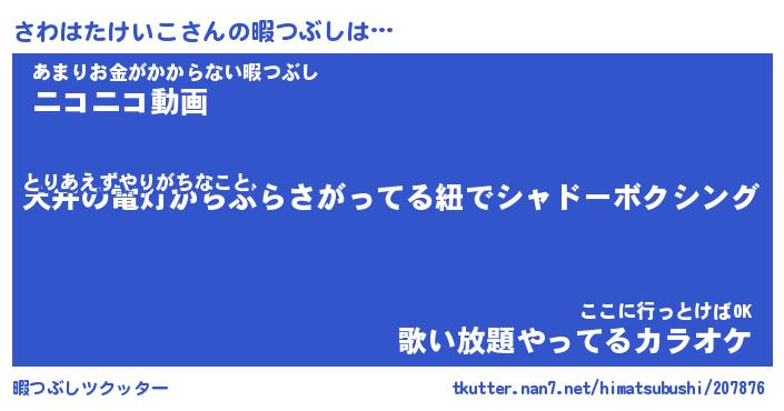 | ヘコむあだ名 | 『さわにー』『なまこ酢』『さわ太郎』 |