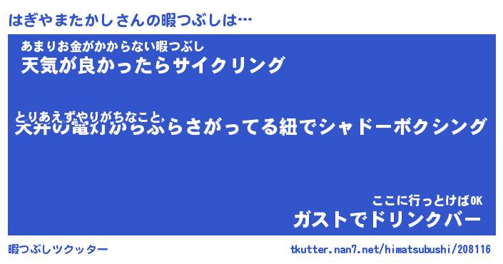 | ピコ太郎風あだ名 | 『ハコ次郎』『ピハ六郎』『ハギ次郎』 |