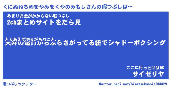 | ヒーロー風カッコイイあだ名 | 『スーパークニヌネチメヲヤミヲクヤノミモシ』 |