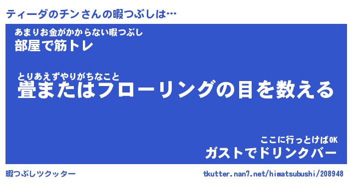 | 男性向けラノベタイトル風あだ名 | 『ティーダのチンの憂鬱』 |