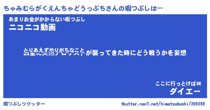 | 胡散臭い通販商品みたいなあだ名 | 『億万長者になれるブレスレット…その名も「ちゃみむらがくえんちゃどうっぶち」』 |