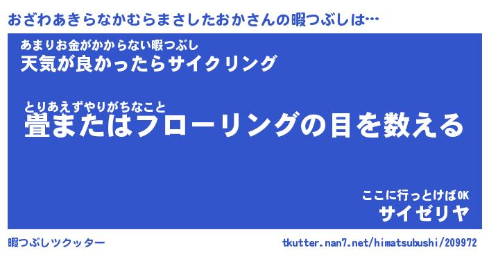 | ツイッター | おざわあきらなかむらまさしたおかさんのツイッターID『renkon_nyan』 |