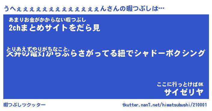 | 料理風あだ名 | 『節約★うへぇぇぇぇぇぇぇぇぇぇぇぇぇんと油揚げの玉子丼』 |