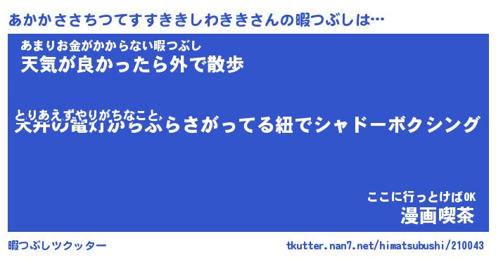 | 胡散臭い通販商品みたいなあだ名 | 『モテモテ間違いなしブレスレット…その名も「あかかささちつてすすききしわきき」』 |
