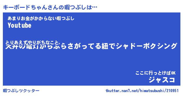 | 料理風あだ名 | 『節約★キーボードちゃんと油揚げの玉子丼』 |