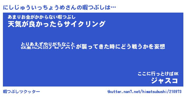 | ヒーロー風カッコイイあだ名 | 『スーパーニシジュウイッチョウメ』 |