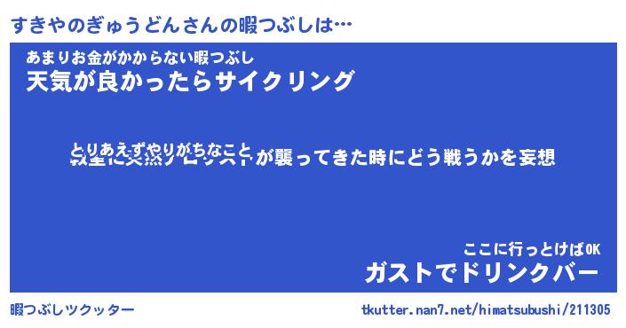 | 伝説のあだ名 | 『封印されしスナイパーすきやのぎゅうどん』 |