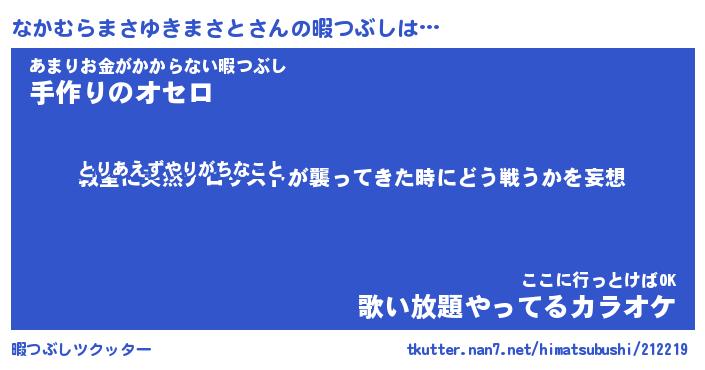 | 伝説のあだ名 | 『封印されし傭兵なかむらまさゆきまさと』 |